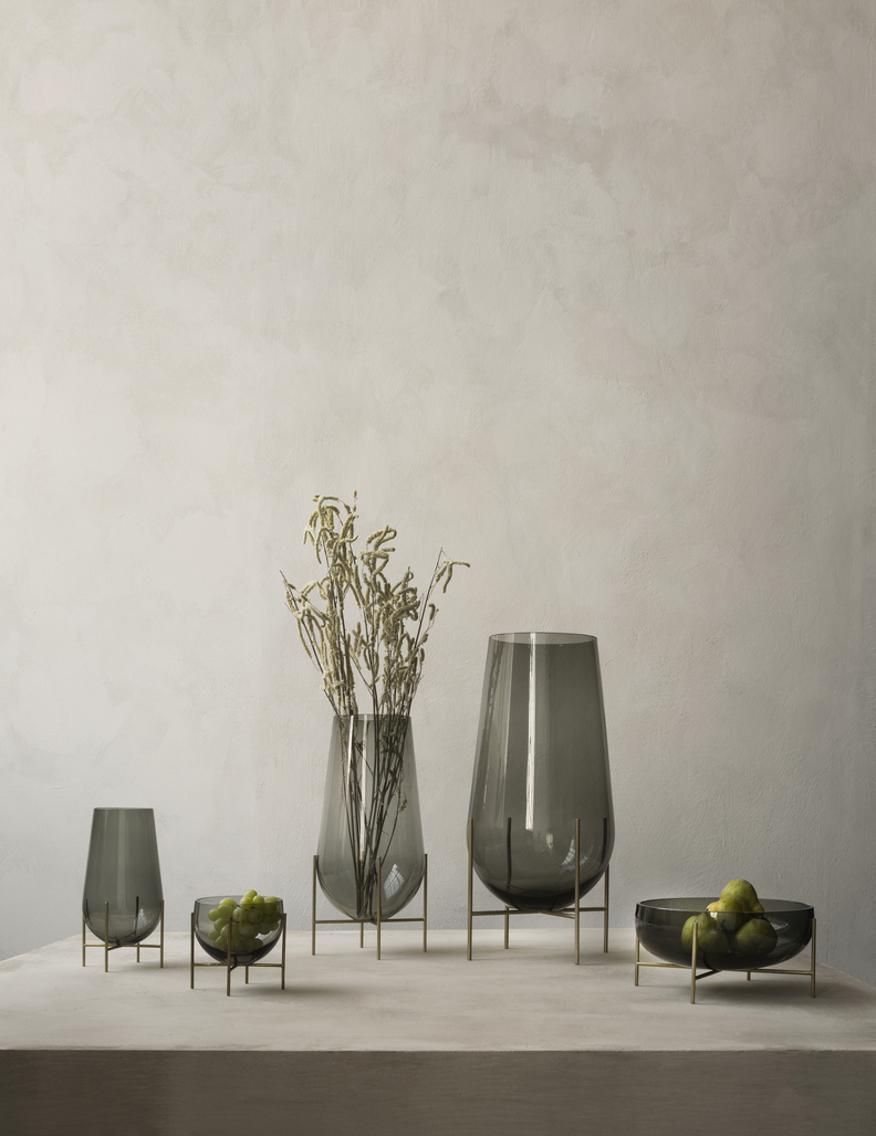 出自 Theresa Arns 的設計作品。Echasse 花瓶有著古典優雅的外型,以傳統透明清雅的水滴造型玻璃,作為帶有玩味與輕盈的視覺感受。黃銅金屬架構出一份專屬獨特的烘托美感,讓 Echasse 作為花器,更呈現出一份尊榮獨特的裝飾藝術。