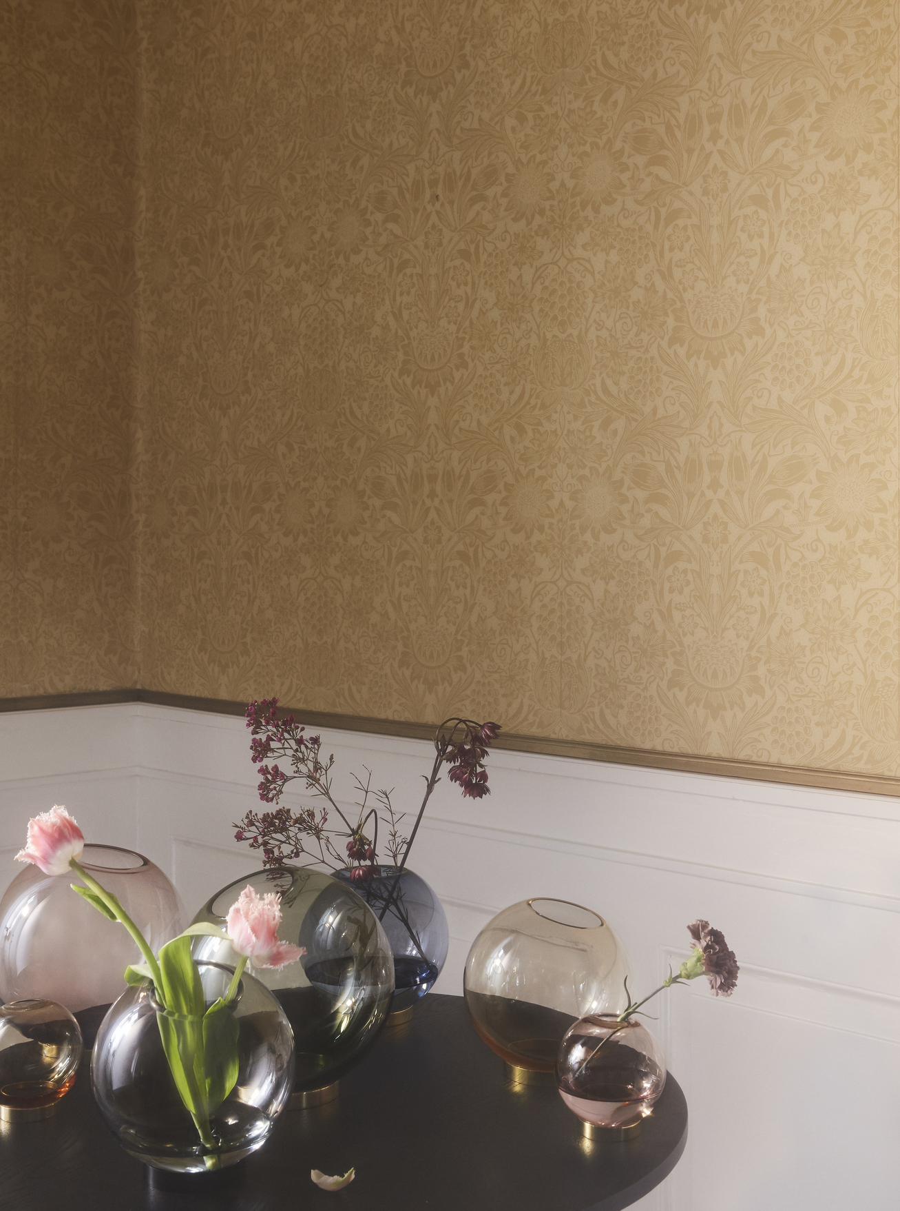 擺在各個角落都引人注目的Globe花瓶,搭配一些鮮花,為您的裝飾並增添格調。這款漂亮的玻璃花瓶採用黃銅底座,外觀溫暖而柔美,非常適合花卉和植物,其寬敞圓潤的造型也可用於創意裝飾或獨立使用。有了這個花瓶,您可以於室內淨化空氣,為您的家營造清新的氛圍。Globe花瓶有許多不同的色調和尺寸可供選擇。