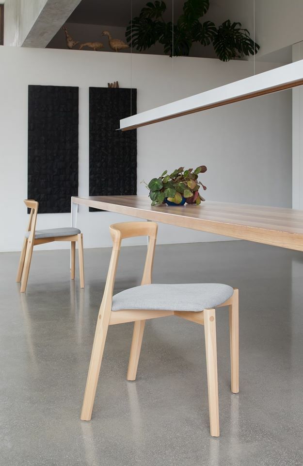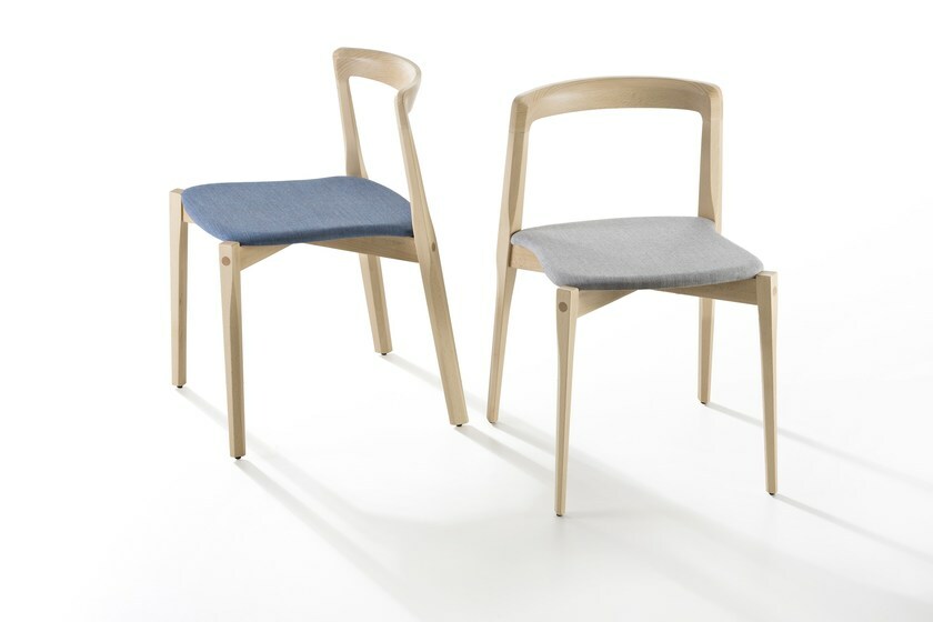 Helix椅子採用實木設計,後腿受到20世紀初飛機螺旋槳的啟發。幾何橫截面沿著結構不斷變化,賦予其新的動態外觀。薄薄的多層木質座椅採用平紋或軟墊布料製成。細長的靠背可以裸露或做成帶有彈性線的馬甲版本。