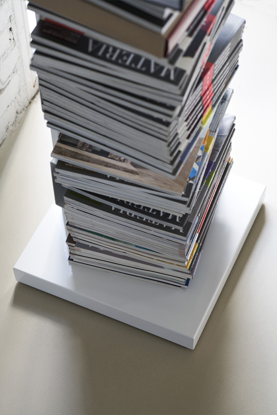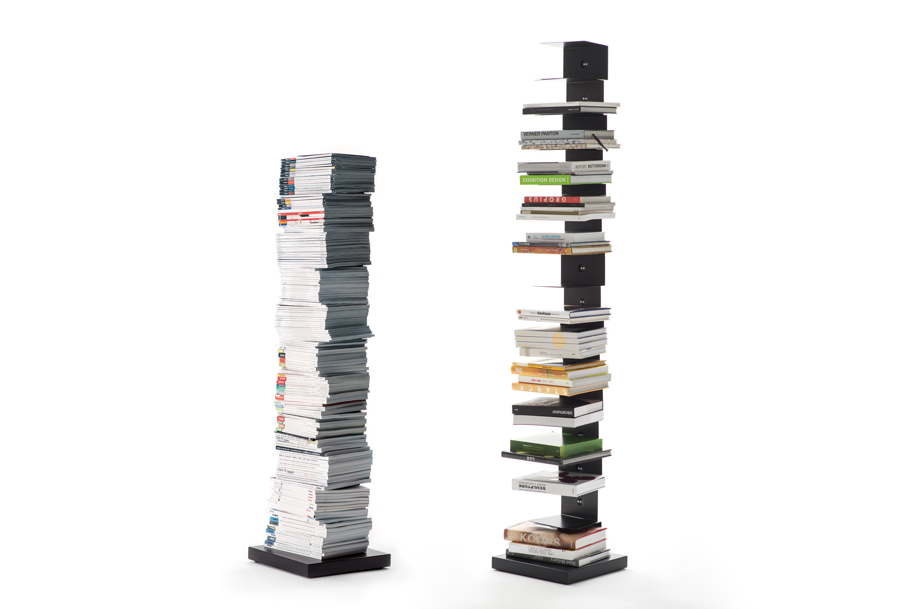 由金屬烤漆柱組成,與 Ptolomeo 系列的其他版本不同,它增加了擱板和底座的尺寸,具有堅固且平衡的結構,即使在沒有放滿的狀態下也能保持穩定性。